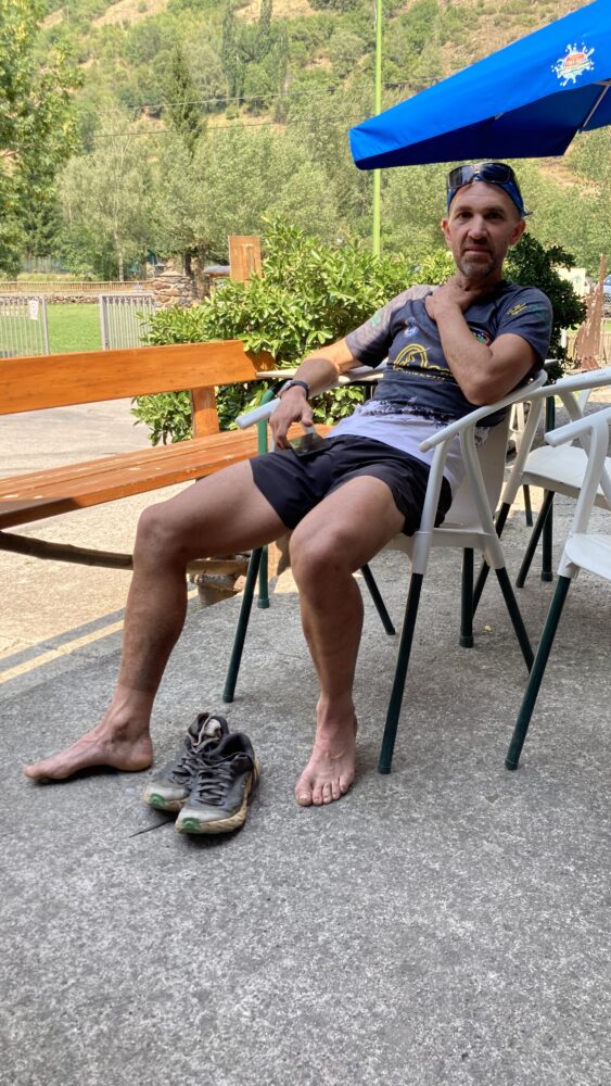 Abans de les 15 h, mentre jo dinava, els dos corredors entraven a la plaça del poble rebaixant en 1 h 05 min el rècord assolit feia just 21 dies. Feliços d’haver aconseguit una marca que de segur haguessin firmat abans de començar. Cansats però sencers. De seguida es van hidrata, van buscar un lloc on seure i així poder-me explicar totes les vivències i sensacions a la JJ. Em quedo amb la imatge caminant descalços pels carrers d’Àreu amb les vambes completament destrossades a les mans i amb la felicitat de ser els primers corredors que aconsegueixen baixar de les 17 h a la JJ
